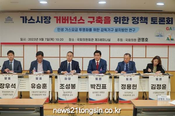 (뉴스21통신/임정훈기자) = 산업통상자원중소벤처기업위원회 소속 국민의힘 권명호 국회의원은 7일(목), 「가스시장 거버넌스 구축을 위한 정책 토론회(부제 : 민생 가스요금 투명화를 위한 감독기구 설치방안 연구)」를 개최하고 투명한 가스시장 조성을 위한 운영방안에 대해 에너지 관련 전문가들과 의견을 청취했다.
