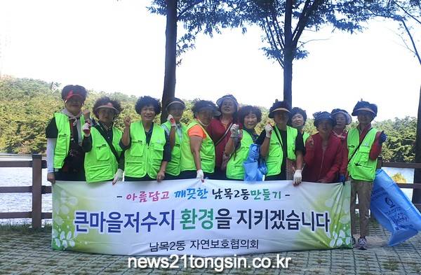 (뉴스21통신/임정훈기자) = 동구 남목2동 자연보호협의회(회장 배수명)는 9월 7일 오전 10시 30분에 관내 큰마을저수지산림공원에서 자연보호협의회 회원 및 동 직원 15여명과 함께 ‘큰마을저수지산림공원 플로깅’을 실시했다.