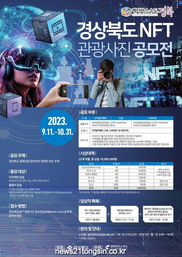 공모전에 대한 자세한 내용은 경상북도 NFT 관광사진 공모전 홈페이지 및 공모전 운영사무국을 통해 확인할 수 있다.