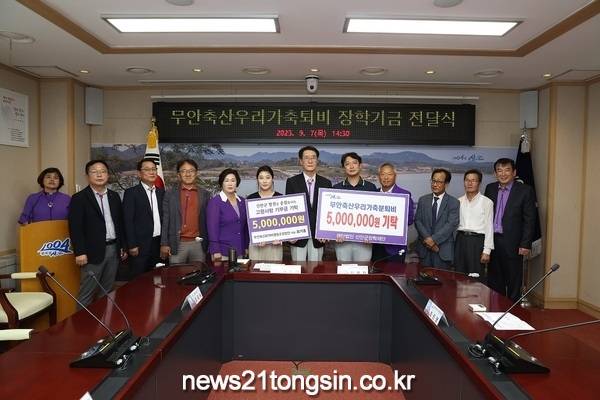 지난 7일, 무안축산우리가축분퇴비(대표 최기휴)의 임원들이 지역 인재 육성을 위한 장학기금 500만 원과 고향사랑 기부금 500만 원, 총 1천만 원을 신안군청에 전달하였다.