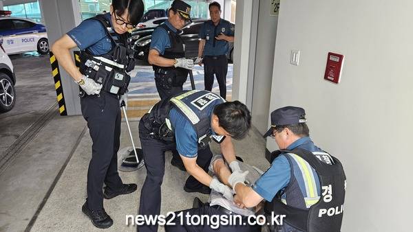 이번 훈련은 ‘어떤 남성이 뒷주머니에 칼을 넣은 상태로 주위를 배회하고 있다’는 상황을 가정하여, 112상황실을 비롯해 지역경찰, 형사팀, 여청팀, 교통팀 등으로 총력 대응 체계를 갖춰 피의자를 신속하게 검거하는 순서로 이뤄졌다.