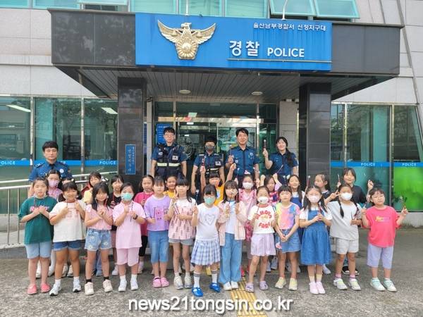 (뉴스21통신/최원영기자)=울산남부경찰서(서장 양순봉) 신정지구대에서는 지난 12일 강남초등학교 학생 60여명을 초청해 어린이 범죄 예방 교육 및 경찰 홍보 활동을 펼쳤다.