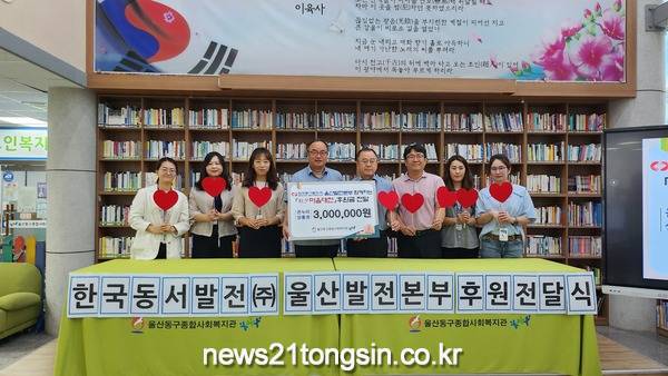 (뉴스21통신/임정훈기자) = 한국동서발전(주) 울산발전본부(본부장 남석열)은 추석을 앞둔 9월 12일오전 11시 울산동구종합사회복지관(관장 이정석)을 찾아 취약한 환경에서 생활하는 동구지역의 어려운 이웃들이 풍성하게 명절을 지낼 수 있도록 온누리상품권 300만원을 전달했다.