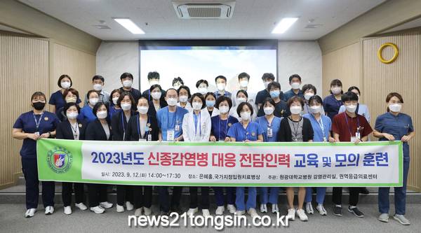 원광대학교병원(병원장 서일영)은 지난 12일 교수연구동 5층 은혜홀에서 2023년 신종 감염병 대응 체계 점검 및 모의훈련을 실시했다.