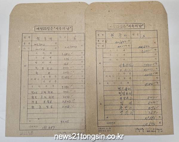 기증유물로는 부친인 원병학님의 흥호공립보통학교, 원중재님의 부론공립심상소학교 상장과 통지표, 원중재님의 공무원 임명장과 발령장, 봉급명세서 등이 있다. 그중 1970년대 공무원 봉급명세서는 오늘날에는 종이문서로 받아볼 수 없는 것이어서 더 흥미로운 자료가 된다.