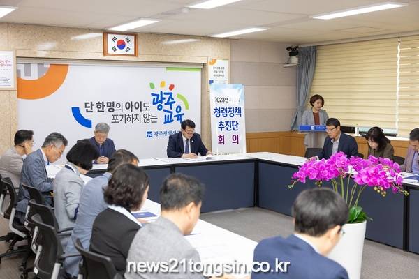 [뉴스21통신/장병기 기자] 광주시교육청이 13일 시교육청 2층 상황실에서 이정선 교육감을 비롯한 19명의 위원이 참석한 가운데 ‘청렴정책추진단’ 회의를 진행했다고 밝혔다.