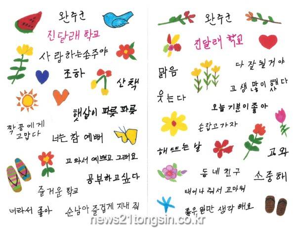 [전북=뉴스21] 오충일 기자= 완주군 진달래학교 어르신들이 그린 글과 그림이 스티커 ‘굿즈’로 탄생했다.