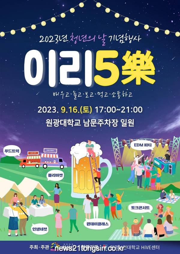 익산시가 오는 16일 원광대학교 남문 주차장에서 ‘2023년 청년의 날 기념행사, 이리5樂’을 개최한다.