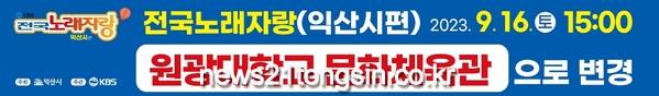 익산시는 오는 16일 개최되는 KBS 전국노래자랑을 우천으로 인해 부득이하게 원광대학교 문화체육관으로 장소를 옮겨 진행한다고 밝혔다.