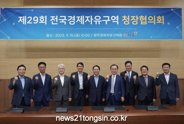[뉴스21통신/장병기 기자] 광주경제자유구역청(이하 광주경자청)은 15일 김대중컨벤션센터에서 전국 9개 경제자유구역청장과 관계자 등 40여 명이 참석한 가운데 ‘제29회 전국경제자유구역 청장협의회’를 개최했다.