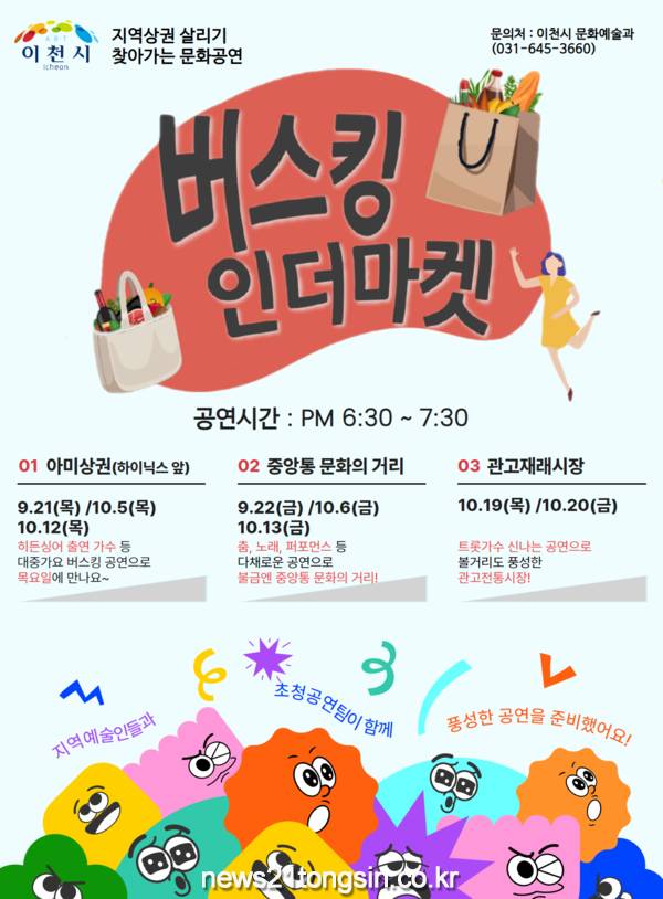 이천시는 버스킹인더마켓 공연을 오는 9월 21일부터 10월 20일까지 진행한다고 밝혔다.