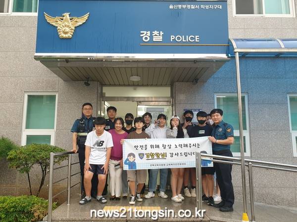 학생들은 지역사회의 안전과 치안을 담당하는 중구 유곡 119안전센터와 학성지구대를 찾아 직접 만든 떡케이크와 한과를 전달했다.