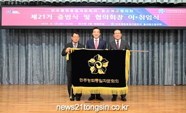 (뉴스21통신/권혁진기자) = 민주평화통일자문회의 울산북구협의회 제21기 출범식이 19일 북구청 대회의실에서 진행됐다. 이날 윤임지 신임회장 취임식과 함께 3분기 정기회의도 열렸다.