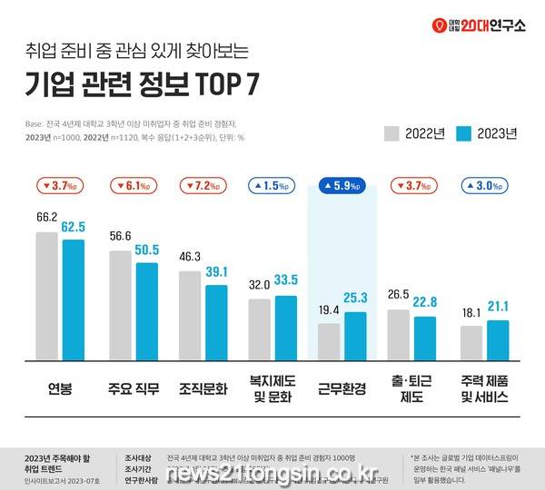 입사 기업 선택 시 ‘근무 환경’의 중요도 2022년 대비 상승