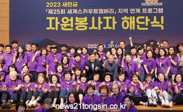 ‘2023 새만금 제25회 세계스카우트잼버리(이하 ‘세계잼버리’)’대회 기간 도내 14개 시군에서 민간외교관 역할을 톡톡히 한 자원봉사자들의 해단식이 열렸다.