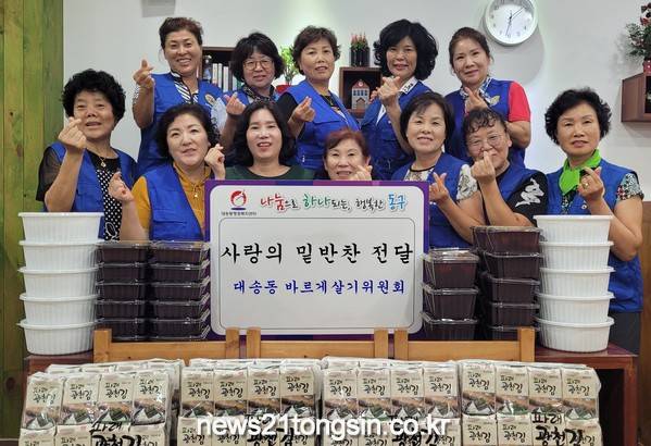 (뉴스21통신/임정훈기자) = 울산 동구 대송동 바르게살기위원회(위원장 전애란)는 9월 20일 오후 1시 대송동 행정복지센터에서 사랑의 밑반찬 나눔 행사를 가졌다.