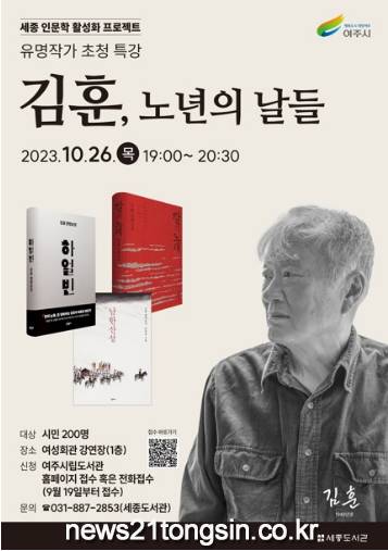 여주시(시장 이충우)는 오는 10월 26일 목요일 오후 7시부터 김훈 작가 초청 특별강연을 진행한다.