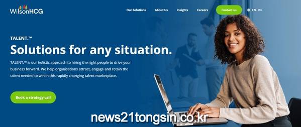 ‘인재. 솔루션 이상의 그 무엇. 바로 우리가 그들입니다.(TALENT.™ It’s more than a solution, it’s who we are.)’ 윌슨HCG(https://www.wilsonhcg.com).