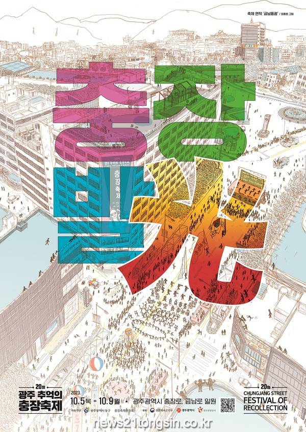 [뉴스21통신/장병기 기자] ‘제20회 광주 추억의 충장축제’가 10월 5~9일까지 동구 금남로와 충장로 일원에서 닷새간의 대장정에 들어간다. ‘충·장·발·光’이라는 파격적인 주제를 내건 올해 충장축제는 추억 모음, 상징물, 추억 놀이, 행렬, 의식의 5가지 구성요소에 맞춰 ▲차별화된 축제 브랜드 창출 ▲지속 가능한 축제 유산 축적 ▲시민들의 참여 경로 다각화를 목표로 관람객 방문을 유도할 예정이다.