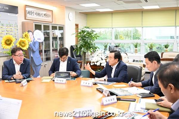 (뉴스21통신/권혁진기자) = 울산 북구는 25일 구청장실에서 농소1동 도시재생활성화계획 수립 용역 최종보고회를 열었다. 이날 보고회에는 박천동 북구청장과 간부공무원, 용역사 관계자 등이 참석해 농소1동 도시재생활성화계획(안)을 공유하고 의견을 나눴다.