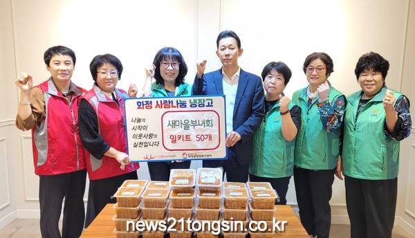 (뉴스21통신/임정훈기자) = 울산 동구 화정동 새마을부녀회가 9월 22일 오전 11시 화정동 행정복지센터에서 ‘화정 사랑나눔 냉장고’에 청국장 밀키트 50개를 기부하여 기부 릴레이를 이어나갔다.