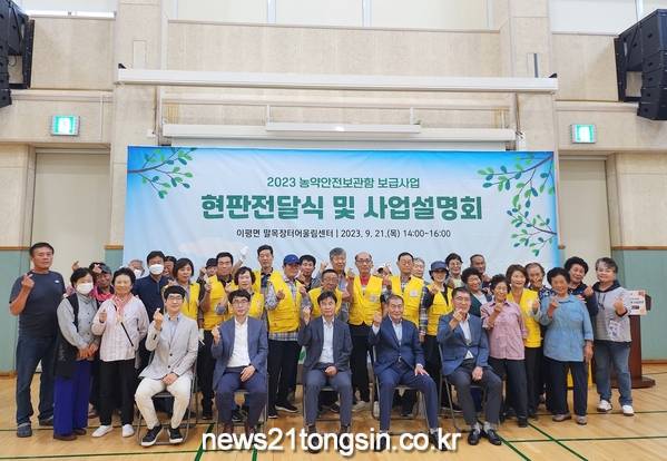 정읍시보건소 정신건강복지센터는 지난 21일 이평면 말목장터어울림센터에서 ‘2023년 농약안전보관함(이하 보관함) 현판전달식·사업설명회’를 진행하였다.