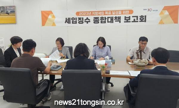 이러한 분위기 가운데 2023년 제2회 ‘세입징수 종합대책반’ 회의가 경제문화국장 주재하에 지난 25일 개최됐다. 세무1과, 세무2과 및 징수과 부서장과 실무 팀장이 참석한 이날 회의에서는 올해 국세 수입이 당초 예산보다 59조원 이상 세수 감소가 우려되는 상황에서 국세와 관련한 지방세입을 점검하고 그에 따른 대책을 논의했다.