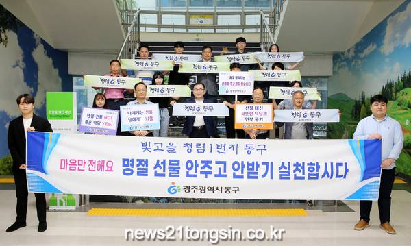 [뉴스21통신/장병기 기자] 광주 동구는 추석 명절을 앞두고 구청 현관에서 전 직원을 대상으로 ‘마음만 전하세요! 명절선물 안 주고 안 받기’ 캠페인을 실시했다고 밝혔다.