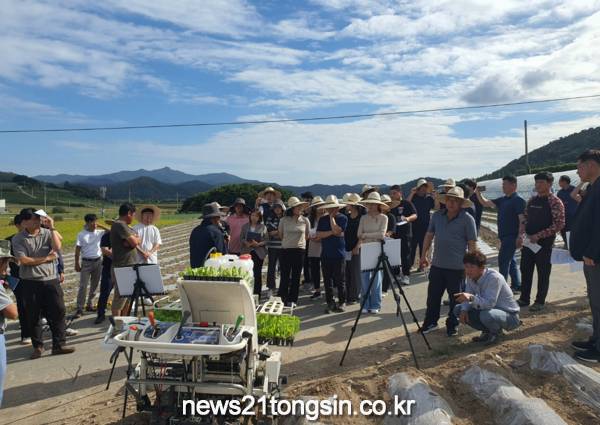 [뉴스21통신 박찬웅 기자] 진도군이 최근 겨울배추 기계화 표준재배모델 현장실증 연구시작을 알리고 배추 정식 시연회를 열었다.