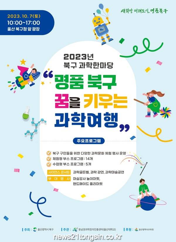 (뉴스21통신/권혁진기자) = 울산 북구는 오는 7일 북구청 광장에서 다양한 과학문화 체험을 할 수 있는 과학한마당을 마련한다.