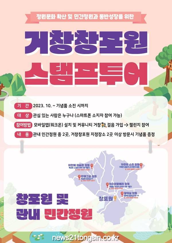 김성남 거창군 환경과장은 “이번 스탬프 투어로 많은 사람이 민간정원과 거창창포원을 방문해 가을 정취를 느끼며 휴식과 치유의 시간을 가지길 바란다”고 말했다.