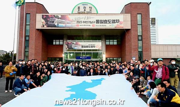 5일 남구에 따르면 올해 마지막 통일열차가 이날 오전 남구 효천역에서 힘찬 기적을 울리며 한반도 최북단 도라산역을 향해 출발했다. 마지막 통일열차에는 관내 주민 등 탑승객 340명 가량이 몸을 실었다.