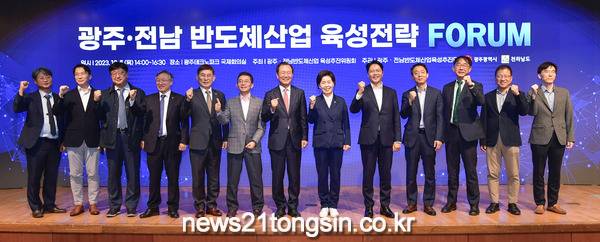 광주광역시(시장 강기정)는 5일 오후 2시 광주테크노파크 국제회의실에서 ‘광주·전남 반도체산업 육성전략 포럼’을 열어 반도체 특화단지 추가 지정을 위한 전략과 경쟁력 강화방안에 대해 열띤 토론을 벌였다.