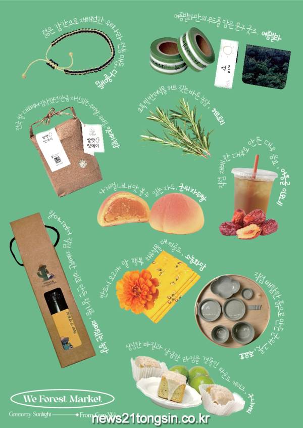 지난 7월부터 군위 청년 창업가(15팀)들이 함께 기획한 청년 플리마켓으로써 군위만의 푸름을 담아 ‘위 포레스트 마켓(We Forest Market)’이라는 이름으로 열린다.