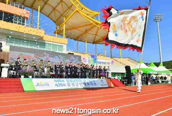 [뉴스21통신 박찬웅 기자] 장성군이 군민 화합의 장을 마련했다. 군은 5일 공설운동장 옐로우시티스타디움에서 ‘제46회 장성군민의 날’ 기념식을 가졌다. 2017년 이후 6년 만에 ‘제26회 장성군민체육대회’와 함께 열려 의미를 더했다.