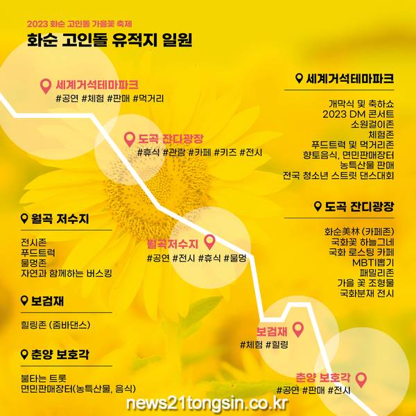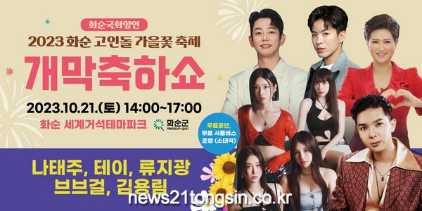 10. 21.(토)엔 군민화합페스티벌인 『2023 화순 고인돌 가을꽃 축제』의 개막식 행사(14:00~ 17:00)가 세계거석테마파크에서 개최된다.