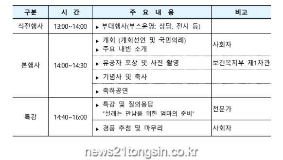 기념행사에서는 그간 건강한 출산과 육아, 임산부 배려문화를 조성하는 데 앞장서 온 유공자에게 대통령 표창(1점)과 국무총리 표창(3점)이 수여됐다.