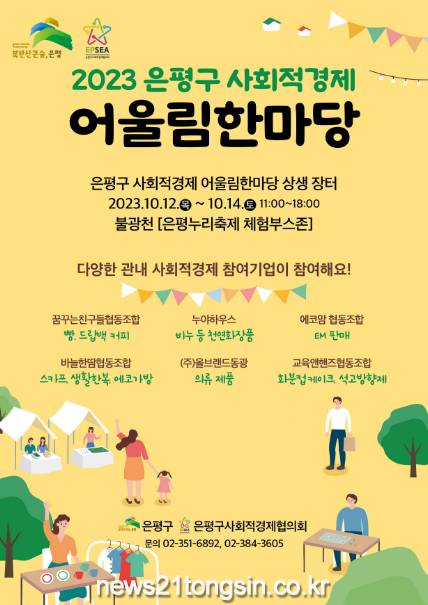 서울 은평구(구청장 김미경)가 오는 12일부터 14일까지 3일간 불광천에서 ‘2023 은평구 사회적경제 어울림한마당’을 개최한다고 밝혔다.