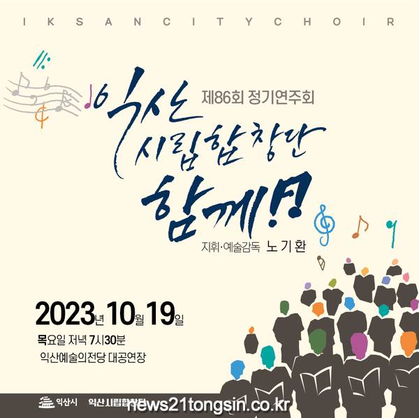 익산시립합창단은 19일 오후 7시 30분 익산예술의전당 대공연장에서 제86회 정기연주회를 개최하며 시민합창단과 ‘함께!!’ 공연을 진행한다.