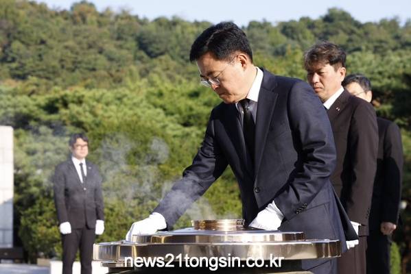 진교훈 강서구청장이 12일(목) 당선 후 첫 공식 일정으로 서울국립현충원 현충탑을 찾아 참배했다.