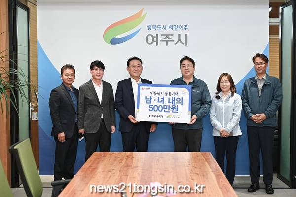 ㈜즐거운미래(대표 류호진)에서 지난 11일 여주시(시장 이충우)를 방문하여 관내 저소득층을 위한 이웃돕기 현물 남ˑ녀 내의 100벌(500만원 상당)을 기탁하였다