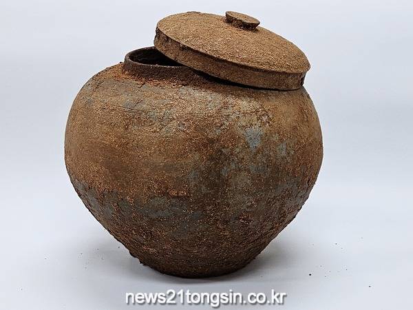 올해 진행 중인 2차 발굴조사에서는 뚜껑 덮인 ‘직구단경호’ 토기가 굴립주건물지 초입부 구덩이(길이 104cm, 너비 91cm, 깊이 34cm)에서 출토되었는데, 토기 내부에 ‘오행대포(五行大布)’ 5점이 ‘+’자 형태로 놓여져 있는 것을 확인했다.