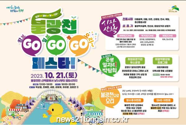 ‘2023 은평 일자리박람회 in불광천’은 전통시장 박람회 ‘시장산책’과 불광천변 지역상권 활성화 행사 ‘불광천으로 오리!’가 함께 열린다. 불광천변 산책로인 응암역~신흥상가교와 불광천미디어센터 2층에서 진행될 예정이다.