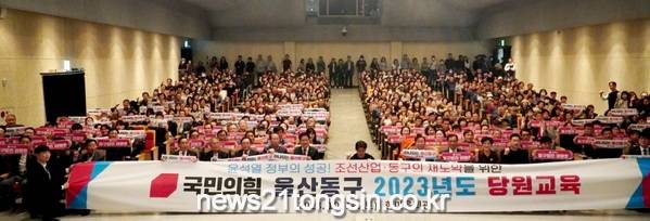 (뉴스21통신/임정훈기자) = 국민의힘 울산동구 당원협의회 (위원장 권명호 국회의원)는 14일(토) 한마음회관 1층 극장에서 국민의힘 울산동구 당원협의회 당원교육을 개최했다.