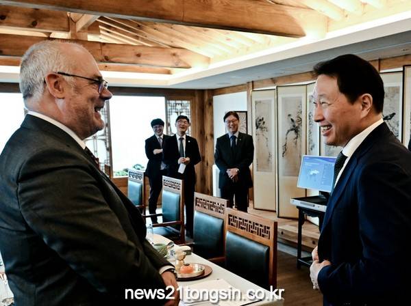 15일 SK그룹에 따르면, 최 회장은 13일 서울 종로구 SK서린빌딩에서 알라르 카리스 에스토니아 대통령 및 정부 고위 관계자들과 오찬 회동을 하고 ICT와 그린에너지 등 분야에서 양국 협력을 증진해 나가기로 했다.