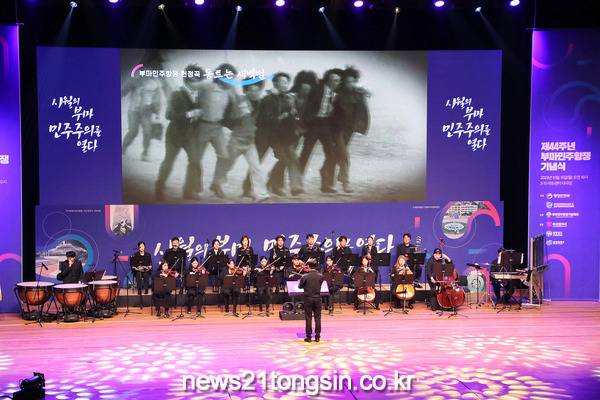 창원특례시(시장 홍남표)는 제44주년 부마 민주항쟁 국가기념식이 ‘시월의 부마 민주주의를 열다’라는 주제로 16일 오전 10시 3·15아트센터 대극장(마산회원구 소재)에서 개최됐다고 밝혔다.