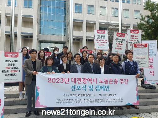 대전시 노동권익센터에서는 16일 오전 11시 대전시청 북문에서 ‘대전노동존중주간 선포식’을 개최했다.