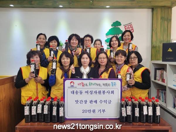 (뉴스21통신/임정훈기자) = 울산 동구 대송동 여성자원봉사회(회장 김종옥)는 10월 17일 오후 1시 맛간장 판매 수익금 20만원을 대송동 행정복지센터에 기부했다.
