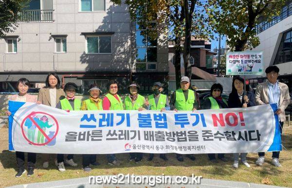 (뉴스21통신/임정훈기자) = 울산 동구 화정동 자연보호협의회(회장 강을숙)는 10월 17일 오전 10시 환경 취약구역을 대상으로 환경정비 및 불법투기 근절 캠페인 홍보 활동을 실시하였다.
