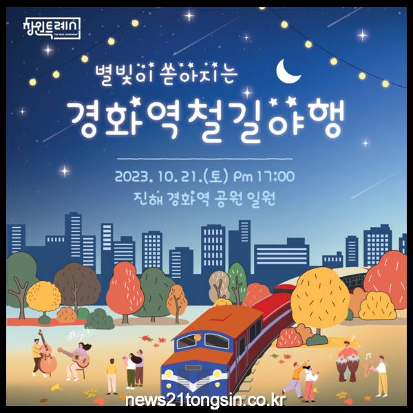 창원특례시(시장 홍남표)는 오는 21일 오후 5시 진해구 경화역공원에서 ‘별빛이 쏟아지는 경화역 철길야행’ 행사를 연다고 17일 밝혔다.